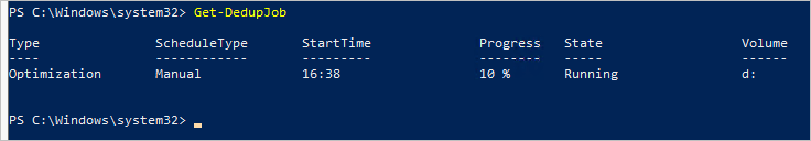 Start-DedupJob -volume "D:" -Type Optimization -Memory 20