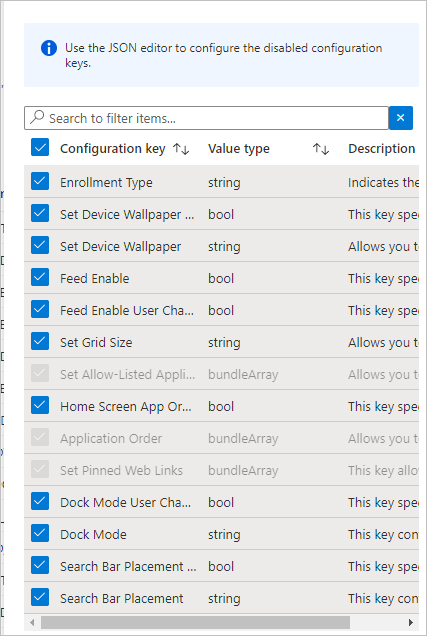 Under Configuration Settings, you can start off using the Configuration Designer and then switch to JSON or you could do it all in JSON format, the latter is required at some point as not all available settings support the Configuration Designer wizard. As you can see three keys are unavailable when using the designer: